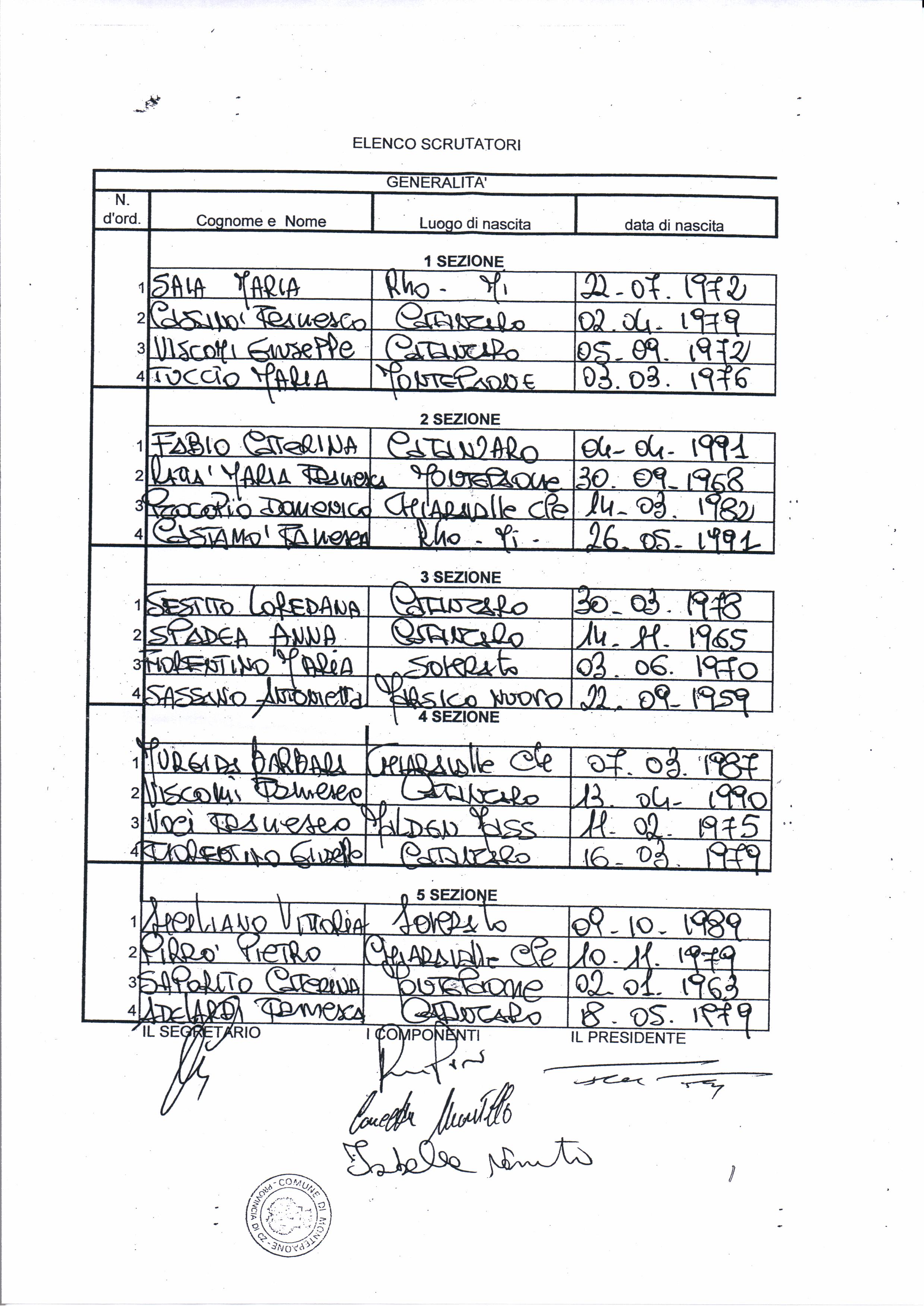 ELENCO SCRUTATORI