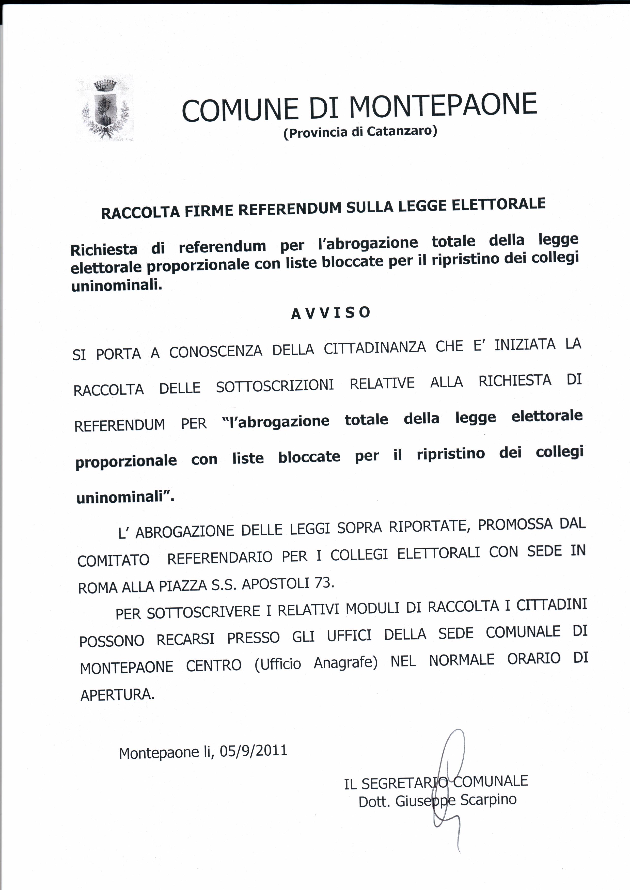 avviso raccolta firme referendum